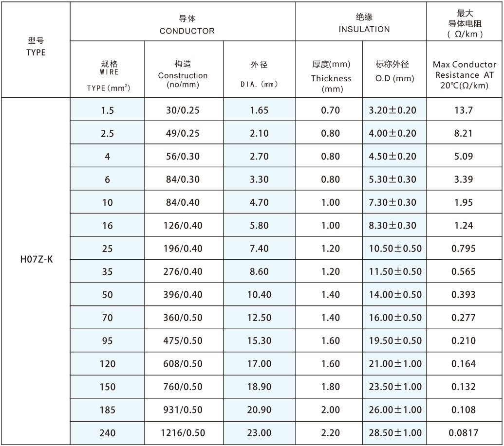 導體采用五類導體1.5-240mm2鍍錫或裸銅絲