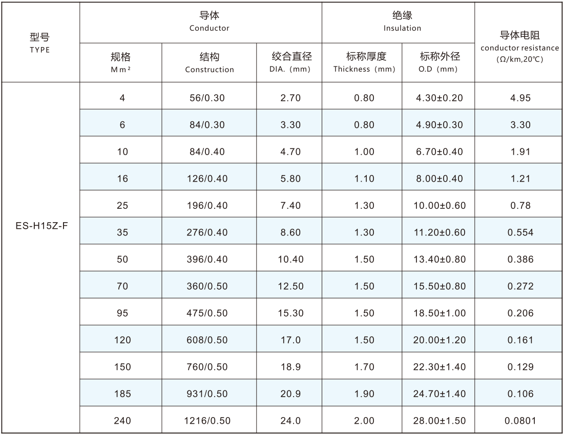 導(dǎo)體采用IEC60228-2004標(biāo)準(zhǔn)第五類(lèi)或六類(lèi)導(dǎo)體4.0-240mm2鍍錫或裸銅